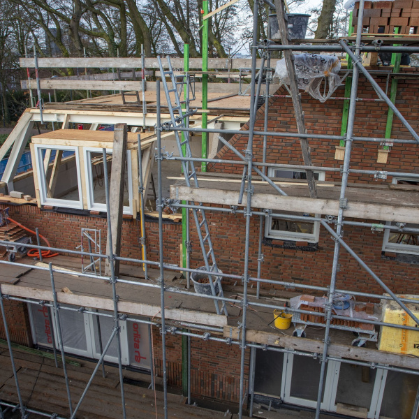 Bouwen op een postzegel in het centrum van 's-Hertogenbosch! Na sloopwerk in 2023 en start bouw februari 2024, hebben we gisteren ons steiger jas...